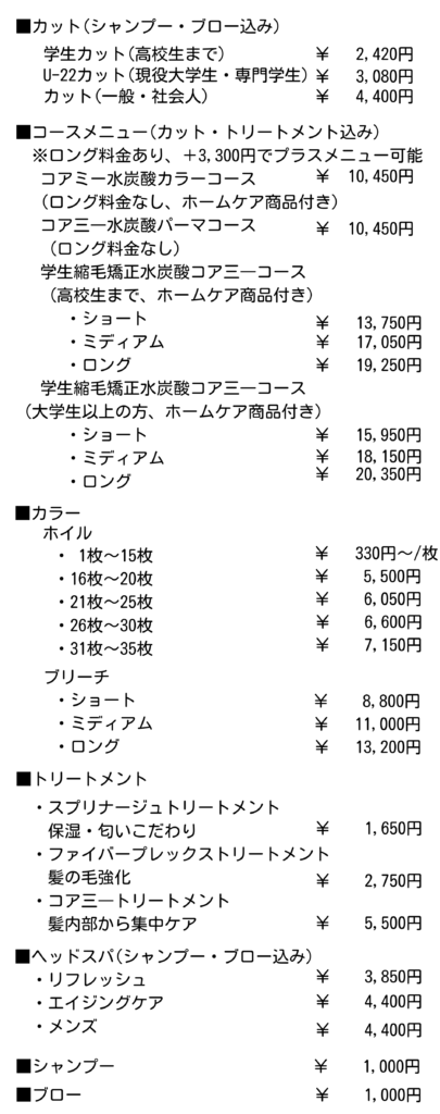 | 支払 方法 | 現金/VISA/JCB/PayPay |